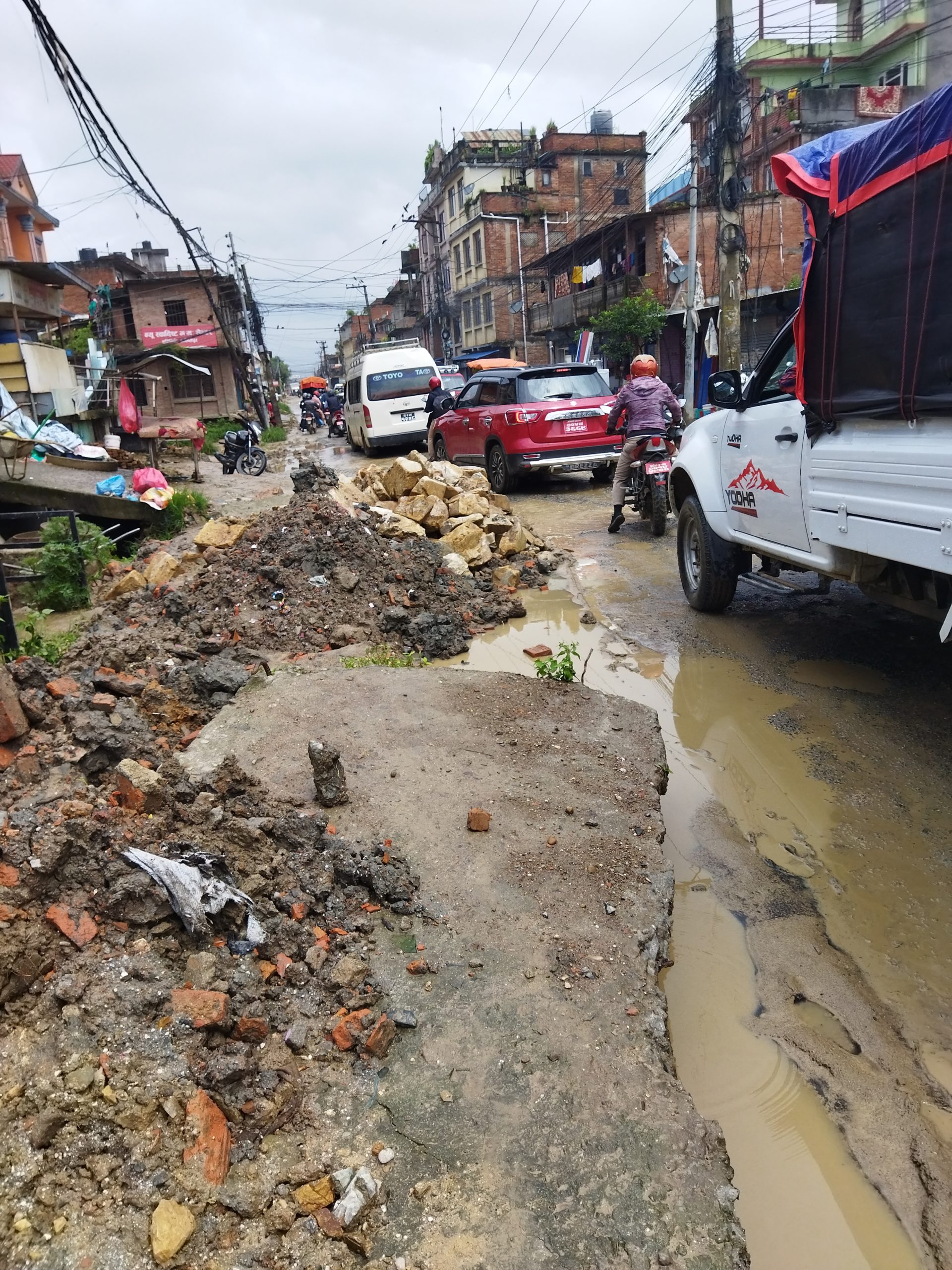 यो बाटो हो या धान रोप्ने ठाउँ हो कुनै पक्तो हुँदैन । बाटोमा हिडेर वा सवारी चलाएर आएको होइन दिनभर रोपाई गरेर आएको जस्तो हुन्छ, घर वा कार्यालय पुग्दा ।वर्षामा धान रोपाइँ गर्नेजस्तो हिलो बाटोमा गाडी चलिरहेका हुन्छन् ‘कछुवा गति’मा। मोटरसाइकल चालकहरू पाइन्ट घुँडासम्म सुर्केर हिँड्छन् । जुक्ता त कुरै नगरम पुरै हिलाम्य हुन्छ । पानी पर्दा हिलाम्य र आल र सुख्खायाममा धुलोले कपडा ढाकिदिन्छ। त्यसमाथि सवारीबाट निस्केको धुवाँले श्वास फेर्नै गारो हुन्छ । यो सडकको कन्तबिजोक छ ।