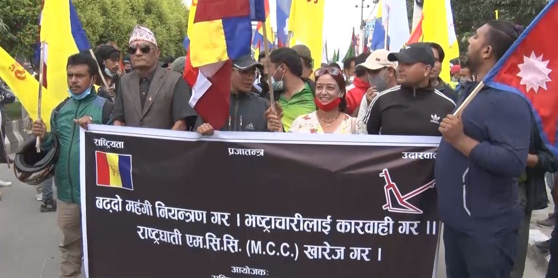 एमसीसी खारेजीको माग गर्दै राप्रपाद्वारा काठमाडौंमा पर्दशन