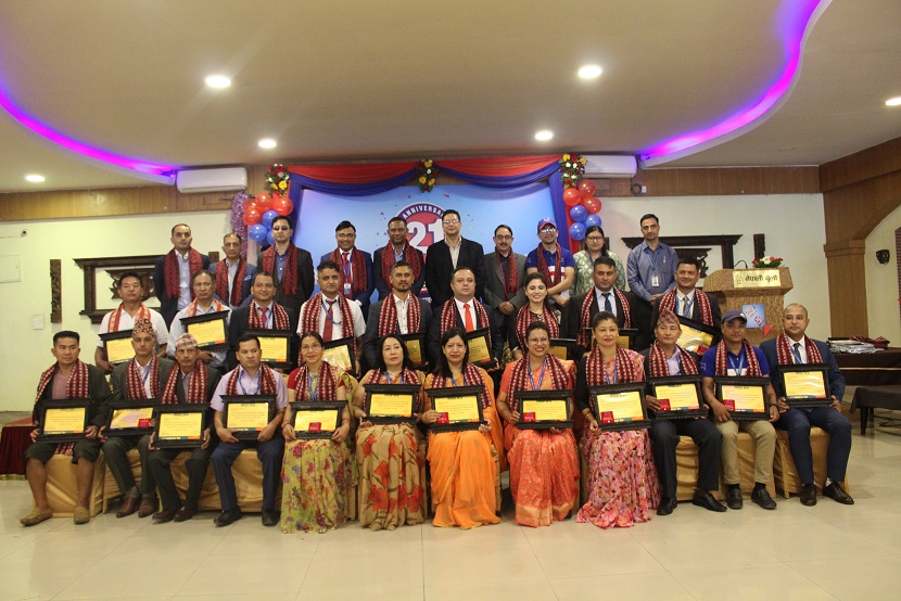 काठमाडौं, १७ असोज । माछापुच्छ्रे बैंक लि. २१ वर्ष पूरा गरी २२ औँ वर्षमा प्रवेश गरेको छ । सोही अवसरमा बैँकले एक कार्यक्रमका बीचमा २० वर्ष भन्दा बढी निरन्तर सेवामा कार्यरत कर्मचारीहरुलाई सम्मान गरेको छ ।