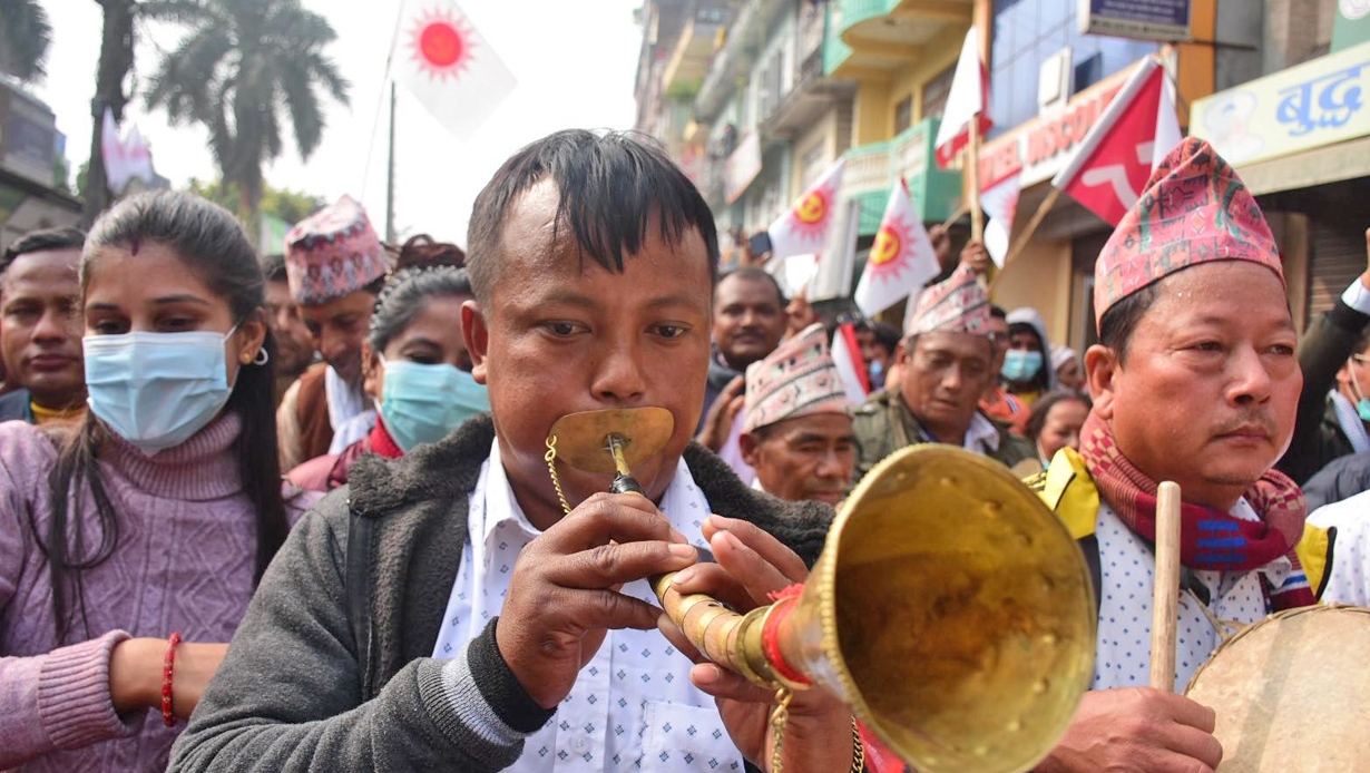 काठमाडौँ , १० मंसिर । नेकपा एमालेको १० औं राष्ट्रिय महाधिवेशनको उदघाटन समारोहमा सहभागी हुनेहरुको जुलुस विभिन्न स्थानबाट निस्किने क्रम जारी छ । बाजागाजा, झण्डा, ब्यानरसहितको जुलुस उदघाटन समारोहमा परिणत हुने क्रम जारी छ ।