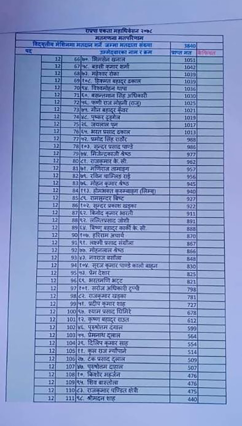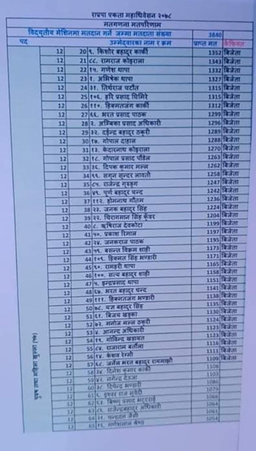 राष्ट्रिय प्रजातन्त्र पार्टी (राप्रपा)को एकता महाधिवेशनको मत परिणाम सार्वजनिक भएको छ । अध्यक्षमा राजेन्द्र लिङ्देन विजयी भएका छन् भने उपाध्यक्षमा विक्रम पाण्डे, बुद्धिमान तामाङ, ध्रुवबहादुर प्रधान, रोशन कार्की निर्वाचित भएका छन् ।