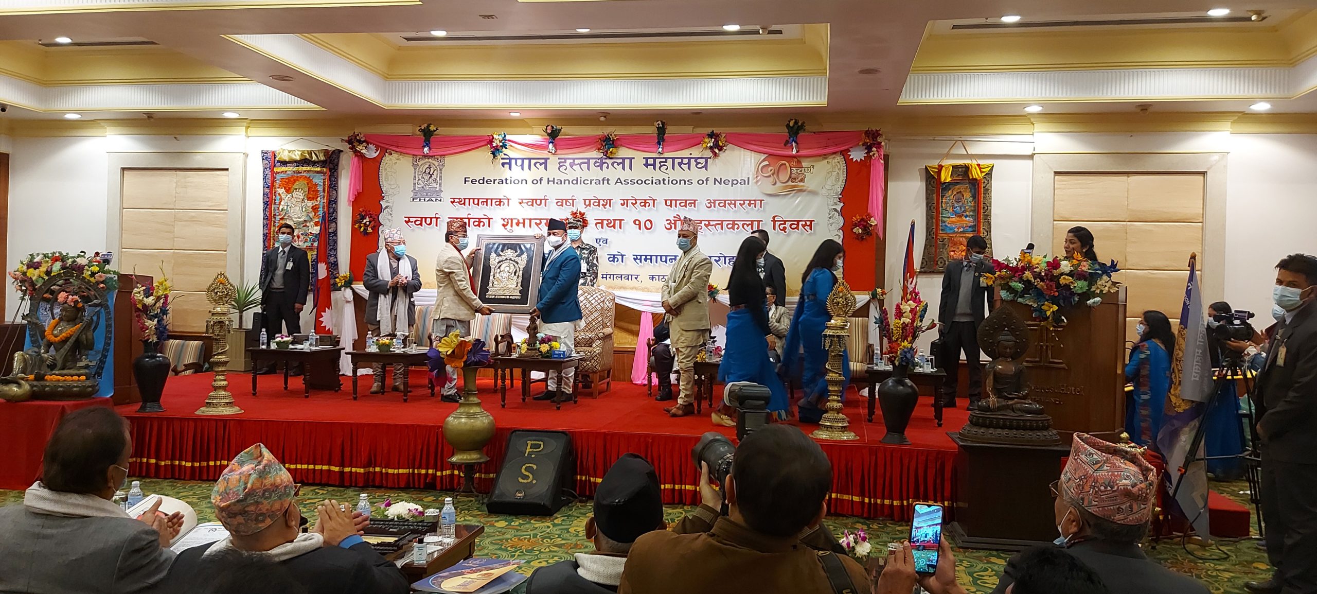 १० औंं हस्तकला दिवस तथा हस्तकला वर्ष सन् २०२१ को समापन कार्यक्रममा उपराष्टपति नन्दबहादुर पुनले महासंघको स्वर्ण महोत्सव शुभारम्भ भएको घोषणा गर्नुभयो । उहाँले निर्यात व्यापार, रोजगारी सिर्जना, गरिबी निवारणका साथै अन्तराष्ट्रिय जगतमा नेपालको पहिचान कायम गर्न सफल हस्तकलालाई सरकारले उच्च प्राथमिकता दिनुपर्ने बताउनुभयो ।