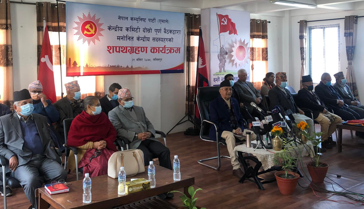 एमालेका मनोनित केन्द्रीय सदस्यहरूलाई ओलीले गराए शपथ
