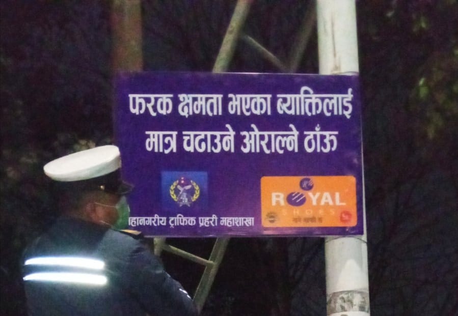 काठमाडौं, माघ १० । महानगरीय ट्राफिक प्रहरी महाशाखाले फरक क्षमता भएका व्यक्तिहरूलाई सार्वजनिक सवारी साधनहरूमा सहज पहुँच र सुविधाका लागि चढ्ने र ओराल्नको लागि पुरानो बसपार्कमा ठाउँको व्यवस्था गरेको छ । महानगरीय ट्राफिक प्रहरी महाशाखाका प्रमुख बरिष्ठ उपरीक्षक उमेश राज जोशीको निर्देशनअनुसार सो व्यवस्था आजदेखि शुरू गरिएको हो ।