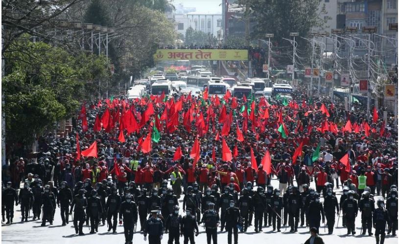 एमसीसी सम्झौता पारितविरुद्ध वामपन्थी दलको राजधानीमा विरोध प्रदर्शन
