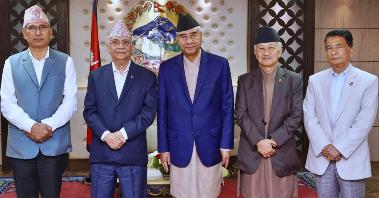 स्रोतका अनुसार ओलीलाई छलफलका लागि देउवाले नै बोलाएका थिए । भेटमा सत्तापक्षबाट देउवासँगै सूचना प्रविधि तथा सञ्चारमन्त्री ज्ञानेन्द्रबहादुर कार्की थिए । प्रमुख प्रतिपक्षबाट ओलीसँगै एमाले उपाध्यक्ष तथा एमाले संसदीय दलका उपनेता सुवासचन्द्र नेम्वाङ र एमालेका अर्का उपाध्यक्ष विष्णु पौडेल सहभागी थिए ।