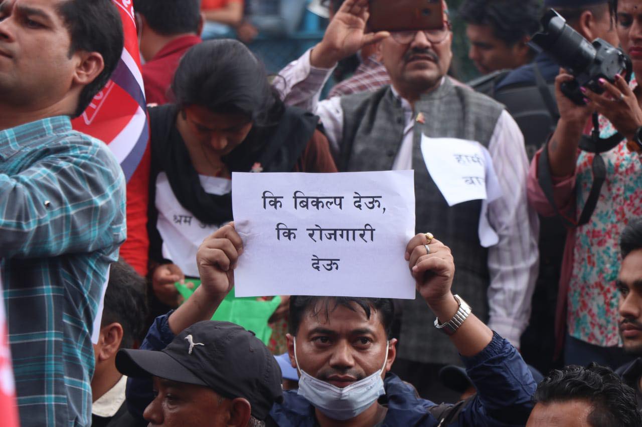 काठमाडौं महानगरले सडकका फुटपाथमा व्यापार गर्न नदिएपछि उनीहरु प्रदर्शनमा उत्रिएका हुन् । एमाले निकट मजदुर संगठन जिफन्ट आवद्ध नेपाल स्वरोजगार श्रमिक व्यापार संघको अगुवामा बिहीबार प्रदर्शन गरिएको छ ।