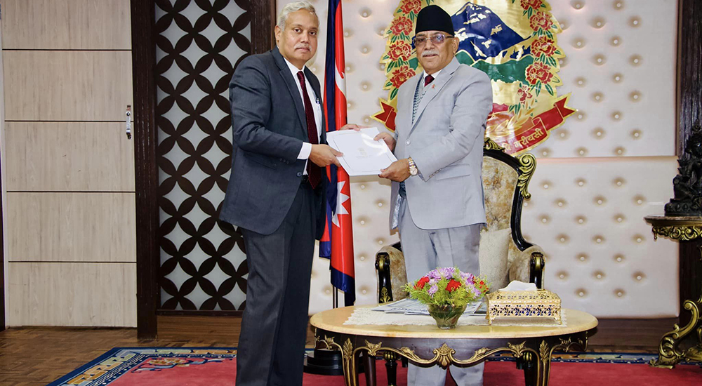 प्रधानमन्त्री प्रचण्ड र भारतीय राजदूत श्रीवास्तवबीच भेटवार्ता, मोदीले पठाए बधाई पत्र