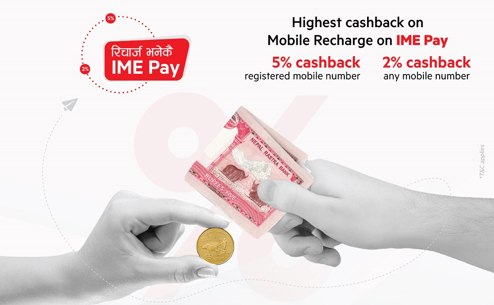 आईएमई पेले फेरि ल्यायो मोबाइल रिचार्जमा ५ प्रतिशत क्यास ब्याक