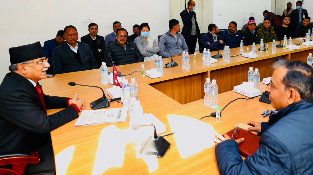 शुक्रबार दिउँसो सिंहदरबारमा नेकपा (बहुमत) का नेता धमेन्द्र बाँस्तोलाको नेतृत्वमा आएको टोलीसँग कुराकानी गर्दै प्रधानमन्त्रीले यसो भनेका हुन्।