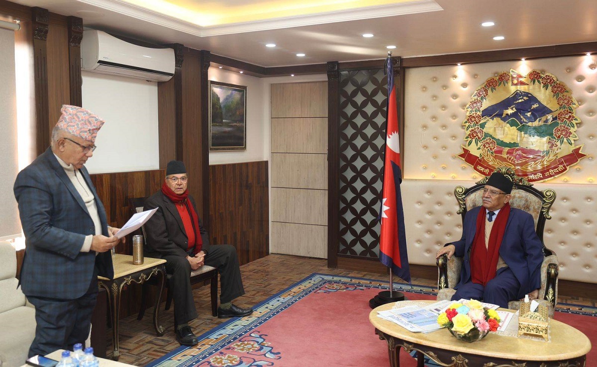 काठमाडौ., माघ १७ । नेकपा एकीकृत समाजवादीले प्रधानमन्त्री पुष्पकमल दाहाल ‘प्रचण्ड’लाई ज्ञापन पत्र बुझाएको छ ।
