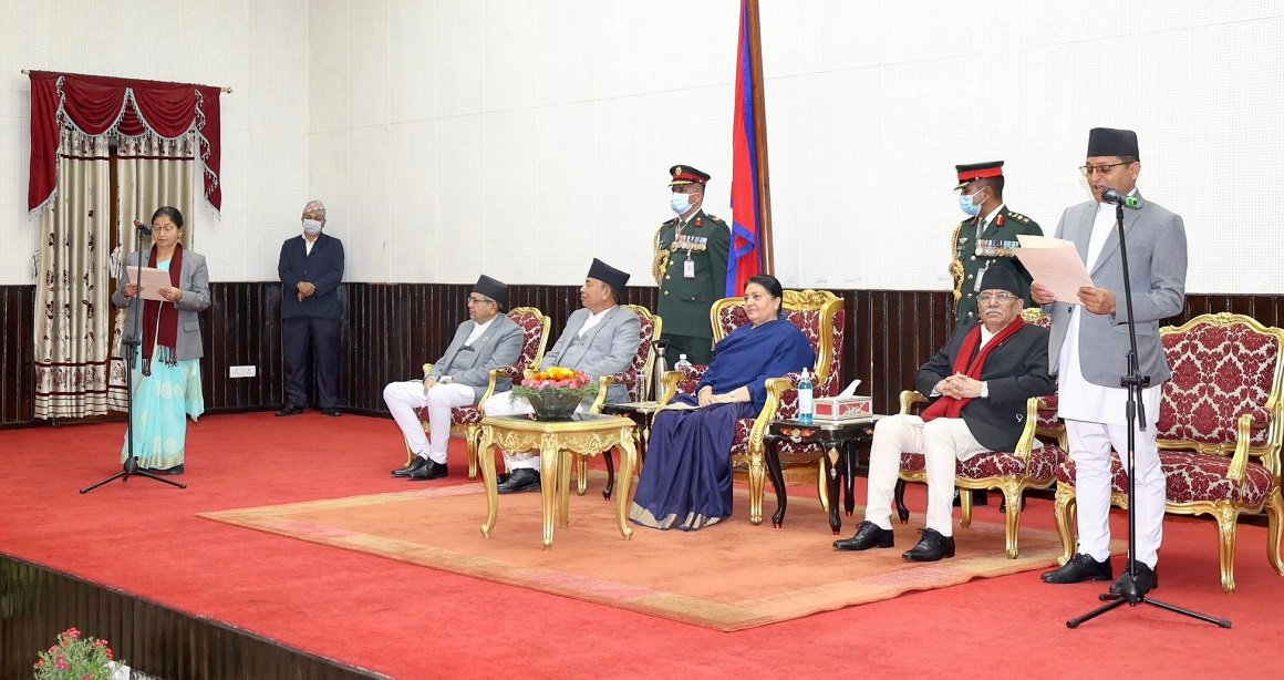 राष्ट्रपति विद्यादेवी भण्डारीसहित उपराष्ट्रपति नन्दबहादुर पुन, प्रधानमन्त्री प्रचण्डलगायतका व्यक्तित्वहरुको उपस्थितिमा राष्ट्रिय सभा अध्यक्ष गणेश तिमल्सिनाले उनलाई पद तथा गोपनीयताको शपथ गराएका हुन् ।