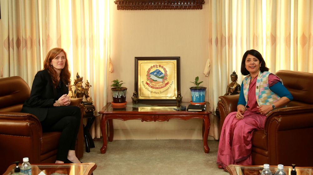 युएसएआइडी प्रमुख सामन्था र परराष्ट्रमन्त्रीबीच भेटवार्ता, सहयोग बढाउने प्रतिवद्धता