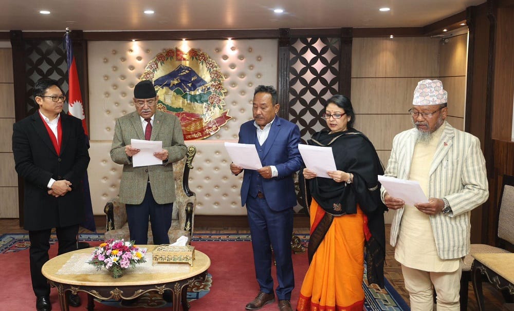 बिहीबार बिहान बालुवाटारमा प्रधानमन्त्री पुष्पकमल दाहाल ‘प्रचण्ड’ले नवनियुक्त ३ कुलपतिहरुलाई पद तथा गोपनियताको सपथ गराएका हुन्।