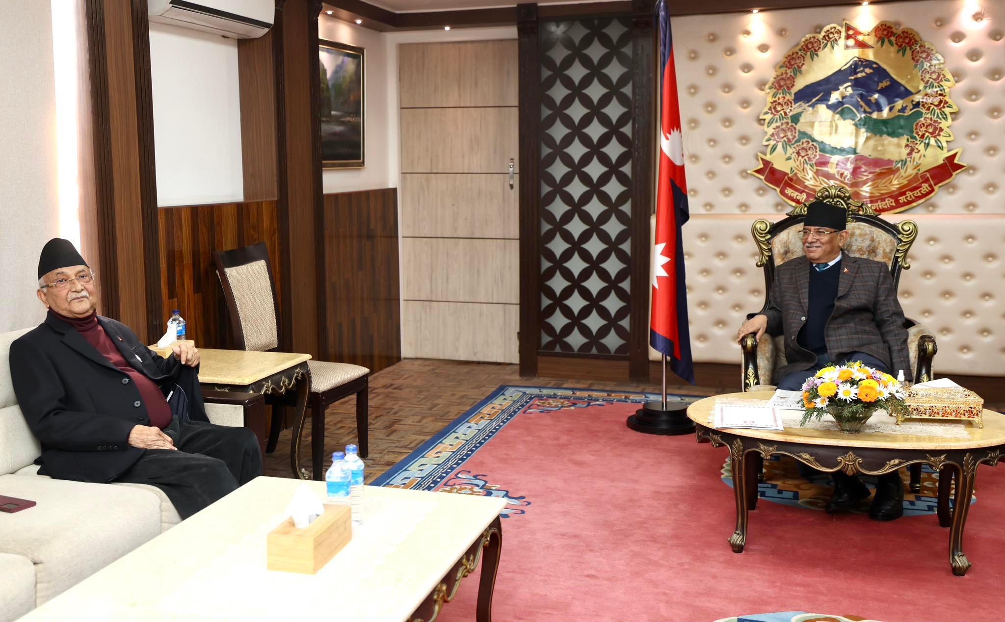 सिंहदरवारमा प्रधानमन्त्री प्रचण्ड र अध्यक्ष ओलीबीच भेटवार्ता