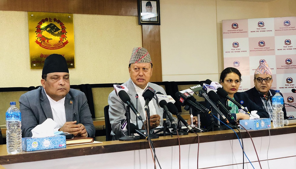 शुक्रबार स्वास्थ्य तथा जनसंख्या मन्त्रालयमा पत्रकार सम्मेलन गरी स्वास्थ्य तथा जनसंख्यामन्त्री मोहनबहादुर बस्नेतले यस्तो बताएका हुन्।