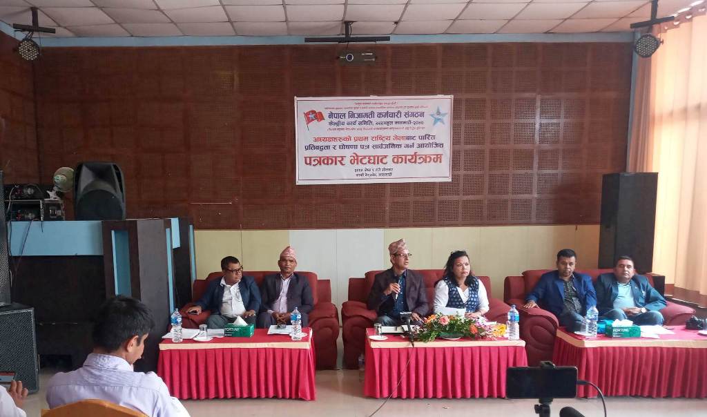 त्यस्तै निजामती सेवा ऐन जारी गराउन वार्ता र संवाद कायम गर्दै आन्दोलन अघि बढाउनेलगायतका ११ बुँदे घोषणा पत्र पनि सार्वजनिक गरिएको छ ।