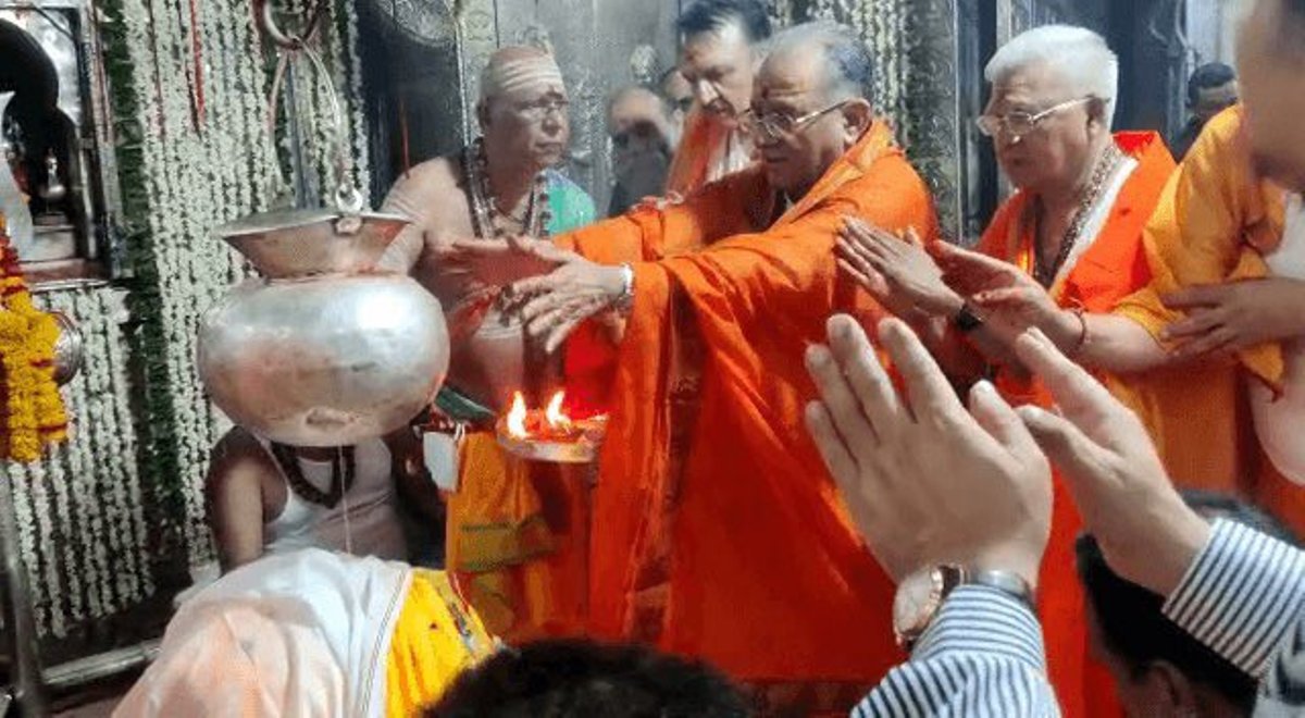 प्रधानमन्त्री प्रचण्डले गरे महाकालेश्वर मन्दिरमा पूजाअर्चना, चढाए १०८ किलो रुद्राक्ष