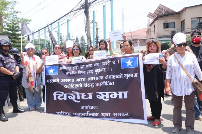 अखण्ड भारत नक्सामा नेपालको भूमि समेटिएको विरोधमा दुतावास अगाडि प्रदर्शन