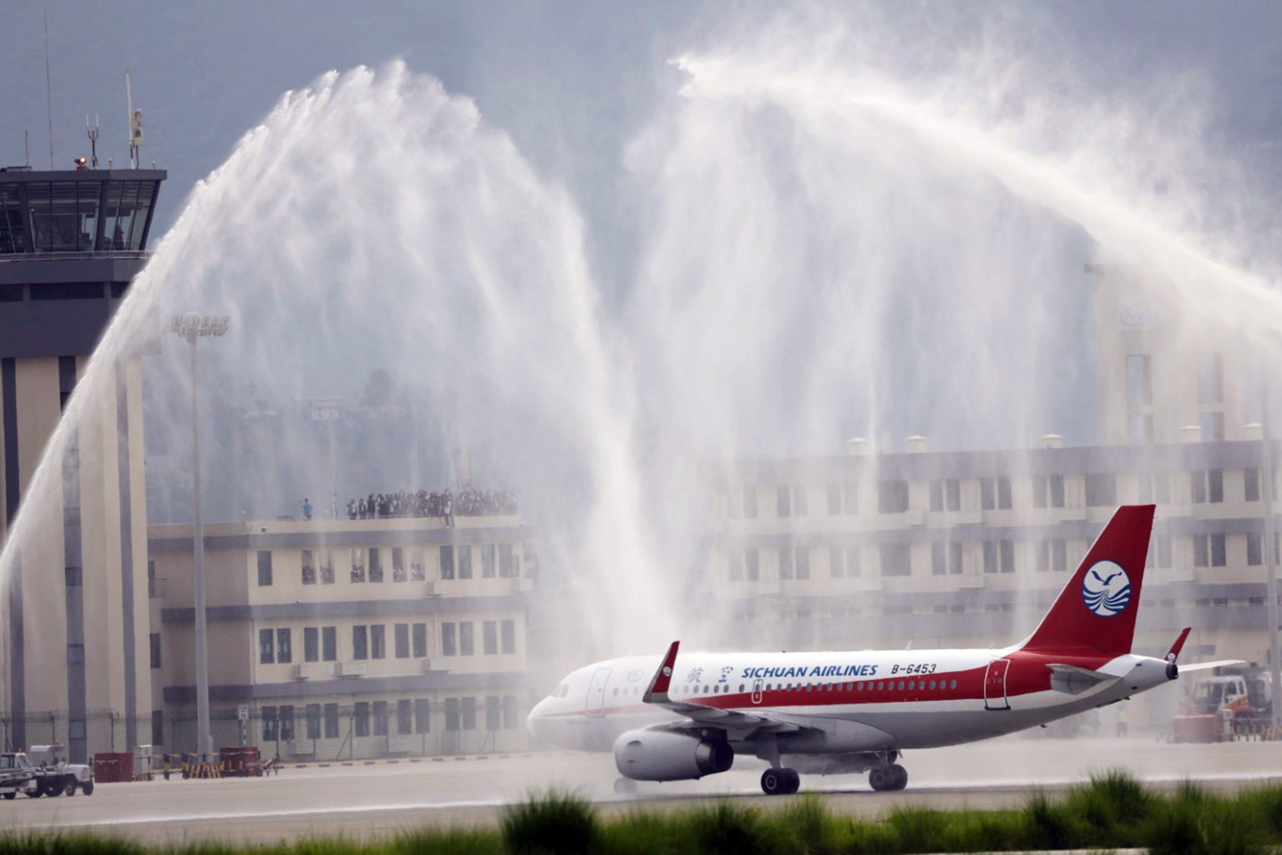 चीनको छेन्दुबाट आएको सिचुआन एयरलाइन्स आज बिहान ९ः०६ बजे अवतरण हुँदा ‘वाटर क्यानन सल्युट’ले स्वागत गरियो । पहिलो अन्तर्राष्ट्रिय उडानका रुपमा ८४ जना यात्रु बोकेर आएको १३१ सिट क्षमताको चिनियाँ सिचुआन एयरलाइन्सलाई स्वागत गर्न पोखरेलीहरु बाजागाजासहित विमानस्थल पुगेका थिए । विमानका यात्रुहरुलाई पर्यटन व्यवसायीले माला र खादाले स्वागत गरे । उनीहरुलाई नेपाली ढाका टोपी लगाएर आतिथ्यता दर्शाए ।