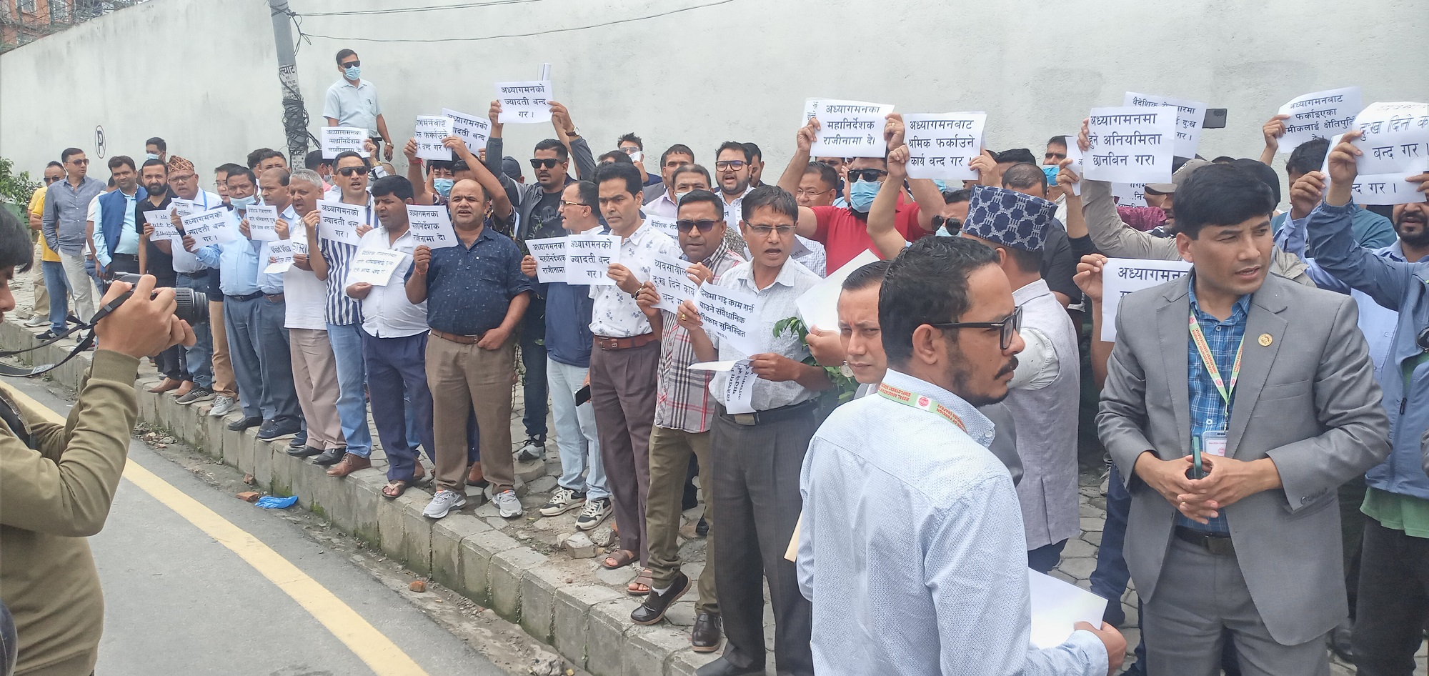कालिकास्थानस्थित अध्यागमन विभाग अगाडि नेपाल वैदेशिक रोजगार व्यवसायी संघले विरोध प्रदर्शन गरेको हो ।