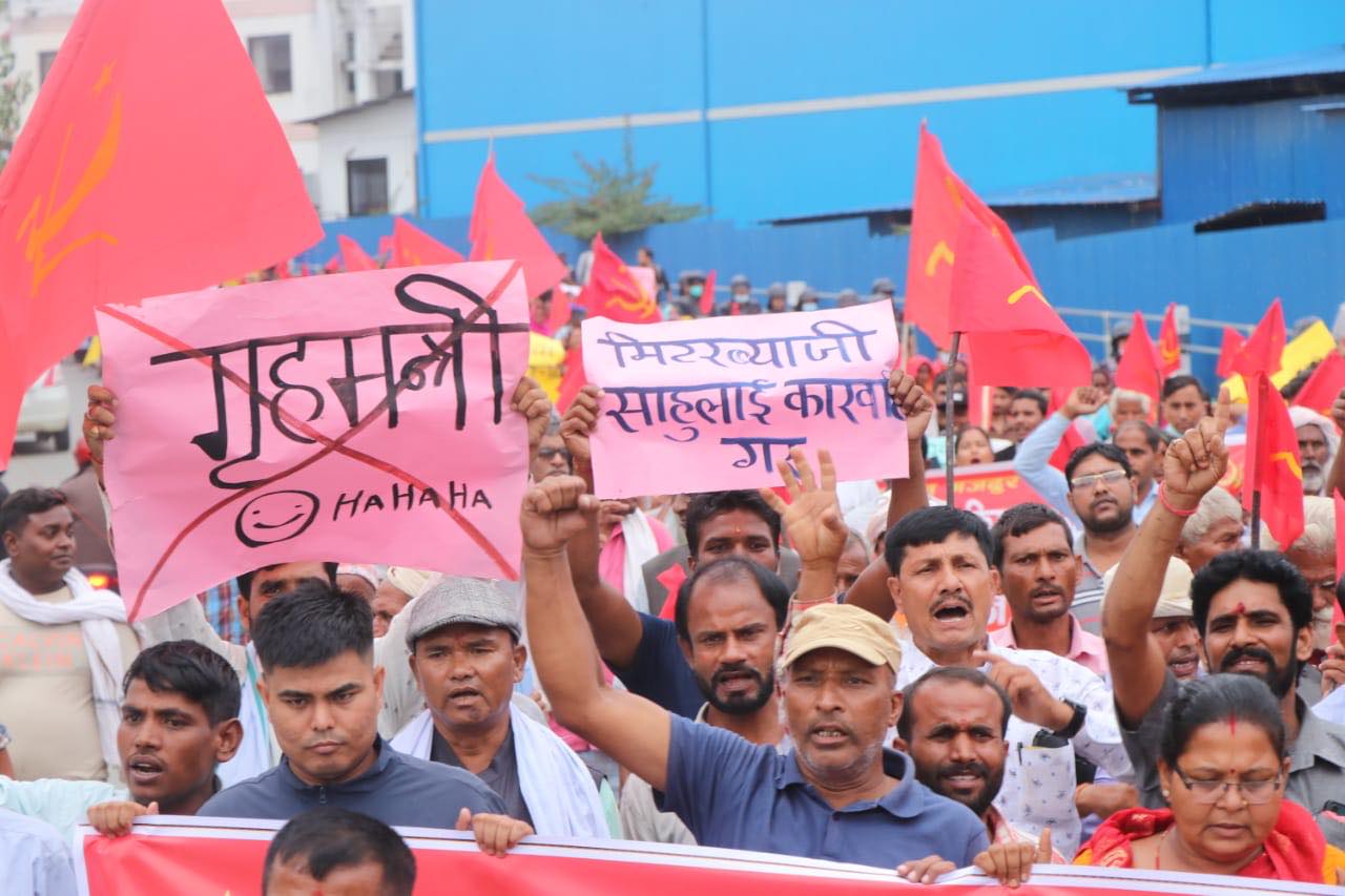 मंगलबार मिटरब्याज तथा ठगीविरुद्ध किसान मजदुर संघर्ष समितिले काठमाडौंको शान्तिवाटिकादेखि बानेश्वरसम्म प्रदर्शन गरेको हो।