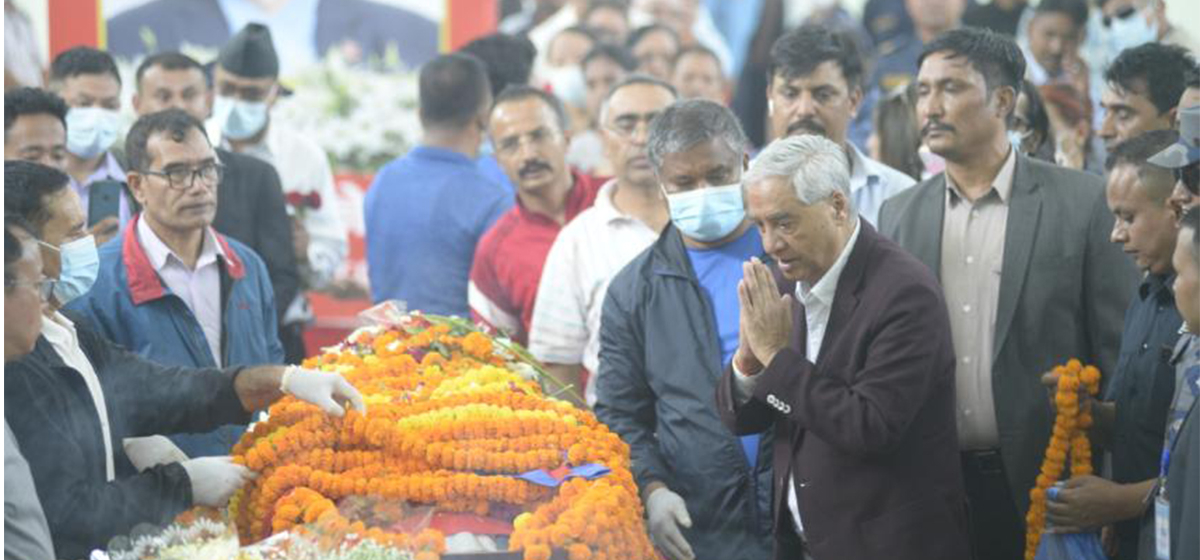 काठमाडौं, भदौ २६ । नेकपा एमालेका दिवंगत नेता सुवास नेम्वाङको पार्थिव शरीरमा कांग्रेस सभापति शेरबहादुर देउवाले श्रद्धान्जली व्यक्त गरेका छन्।