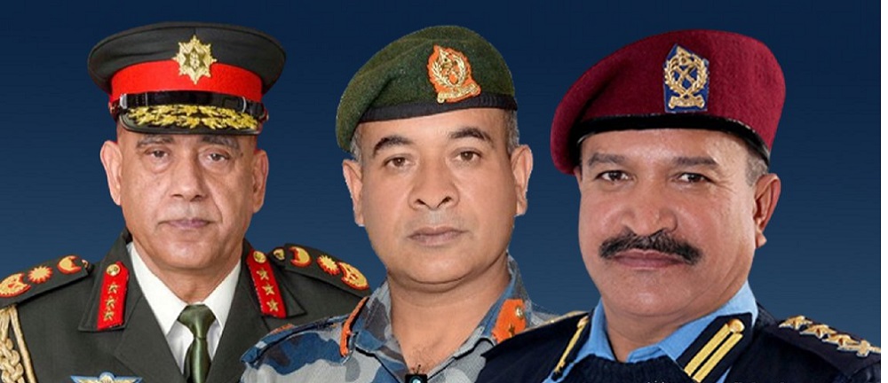 नेपाली सेनाका प्रधानसेनापति प्रभुराम शर्मा, नेपाल प्रहरीका प्रहरी महानिरीक्षक वसन्त कुँवर र सशस्त्र प्रहरी बलका महानिरीक्षक राजु अर्याल विदेश भ्रमणमा गएका हुन्।