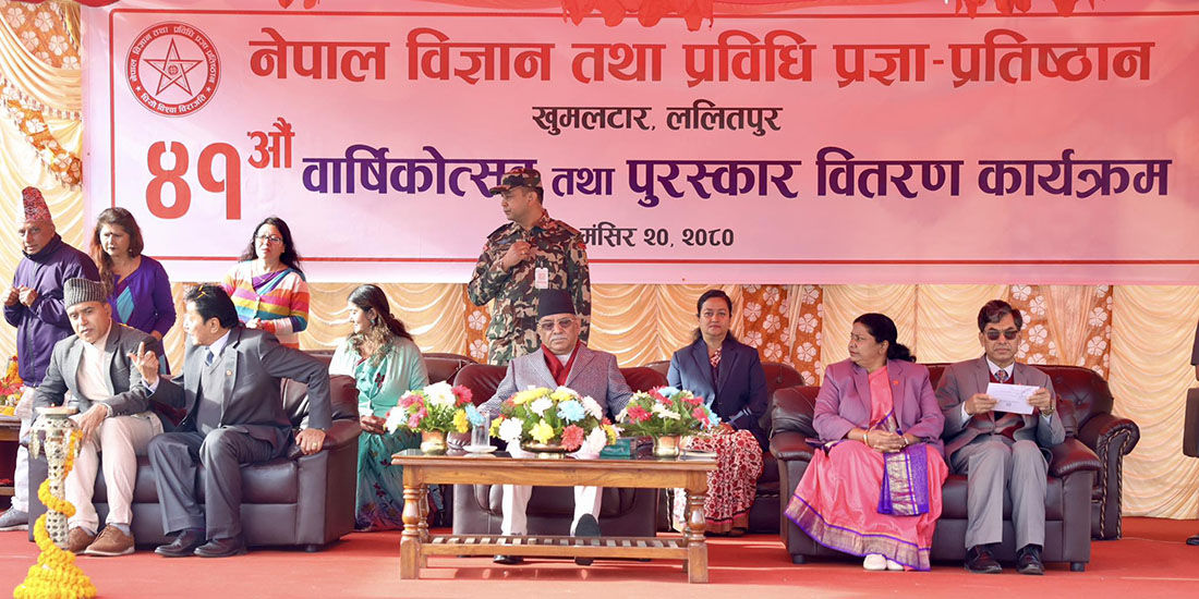 बुधबार नेपाल विज्ञान तथा प्रविधि प्रज्ञा प्रतिष्ठान ९नास्ट०को ४१ औं वार्षिकोत्सव तथा पुरस्कार वितरण कार्यक्रमलाई सम्बोधन गर्दै प्रधानमन्त्री प्रधानमन्त्री प्रचण्डले युवा वैज्ञानिकलाई स्वदेशमै बस्न प्रोत्साहन गरिने बताएका हुन्।