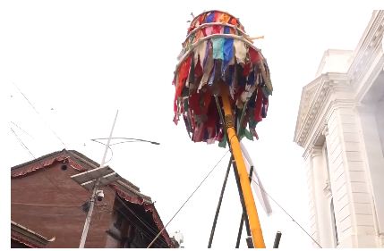 आज बिहान काठमाडौंको हनुमानढोकास्थित बसन्तपुरमा रंगीविरंगी कपडाहरूको ध्वजासहितको तीन खण्डे चीर ठड्याइएको हो।