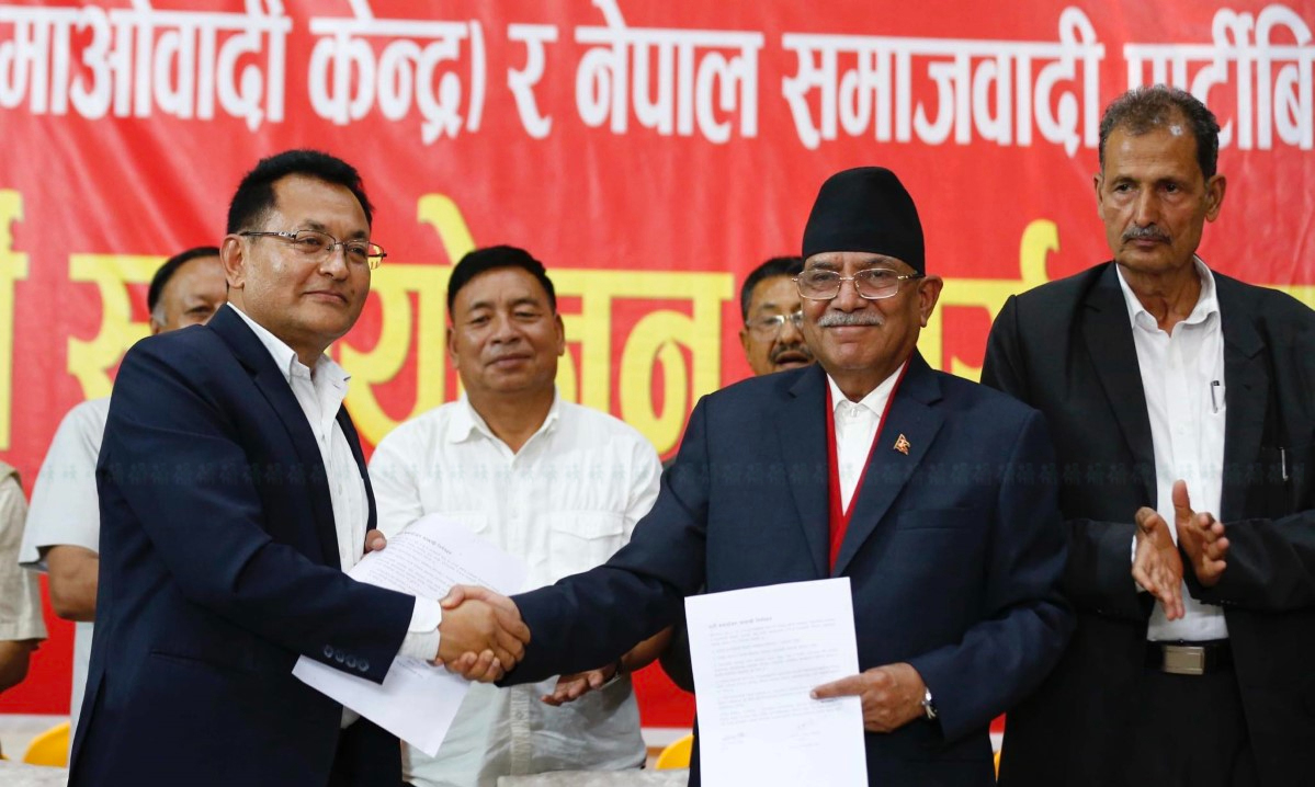 काठमाडौं, १२ जेठ । नेकपा (माओवादी केन्द्र) र नेपाल समाजवादी पार्टीबीच सोमबार समायोजन सहमति भएको छ।