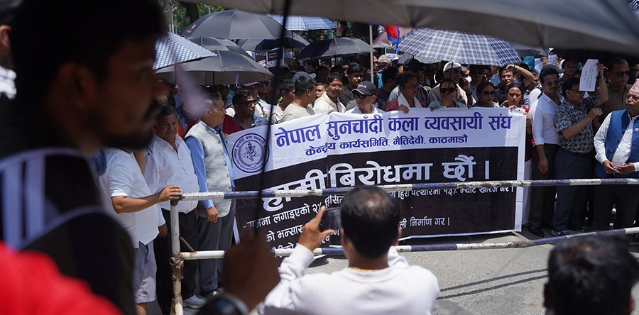 आर्थिक वर्ष २०८२र८३ को बजेटमार्फत सुनका गहनामा २ प्रतिशत विलासिता कर र हीराजडित गहनामा १३ प्रतिशत मूल्य अभिवृद्धि कर (भ्याट) लगाइएको थियो। सो व्यवस्था खारेजको माग गर्दै व्यवसायीहरू चरणबद्ध आन्दोलनमा उत्रिएका थिए। त्यसको असरस्वरूप सुनचाँदीको कारोबार स्थगित हुनुका साथै दैनिक दर निर्धारणसमेत रोकिएको थियो।