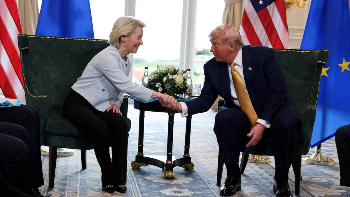 स्कटल्याण्ड पुगेका अमेरिकी राष्ट्रपति डोनाल्ड ट्रम्पले टर्नबेरीमा आइतबार युरोपेली संघकी अध्यक्ष उर्सुला भान देर ल्यायनसँग व्यापार सम्झौता गरेका हुन्।