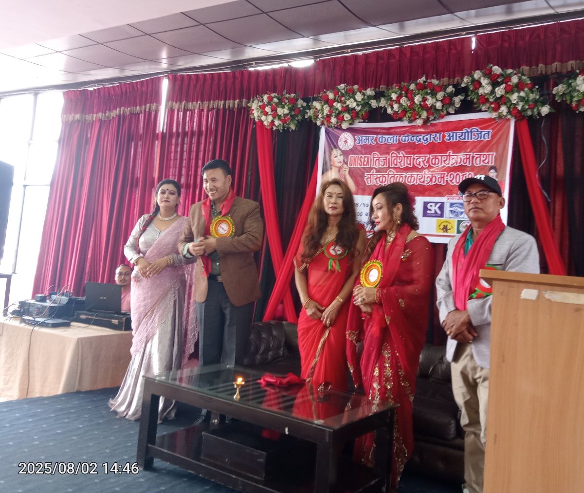 काठमाडौँ । अमर कला केन्द्रद्वारा राजधानीमा आयोजित ‘तीज विशेष कार्यक्रम’को अवसरमा दर कार्यक्रम तथा सांस्कृतिक कार्यक्रम सम्पन्न गरेको छ।