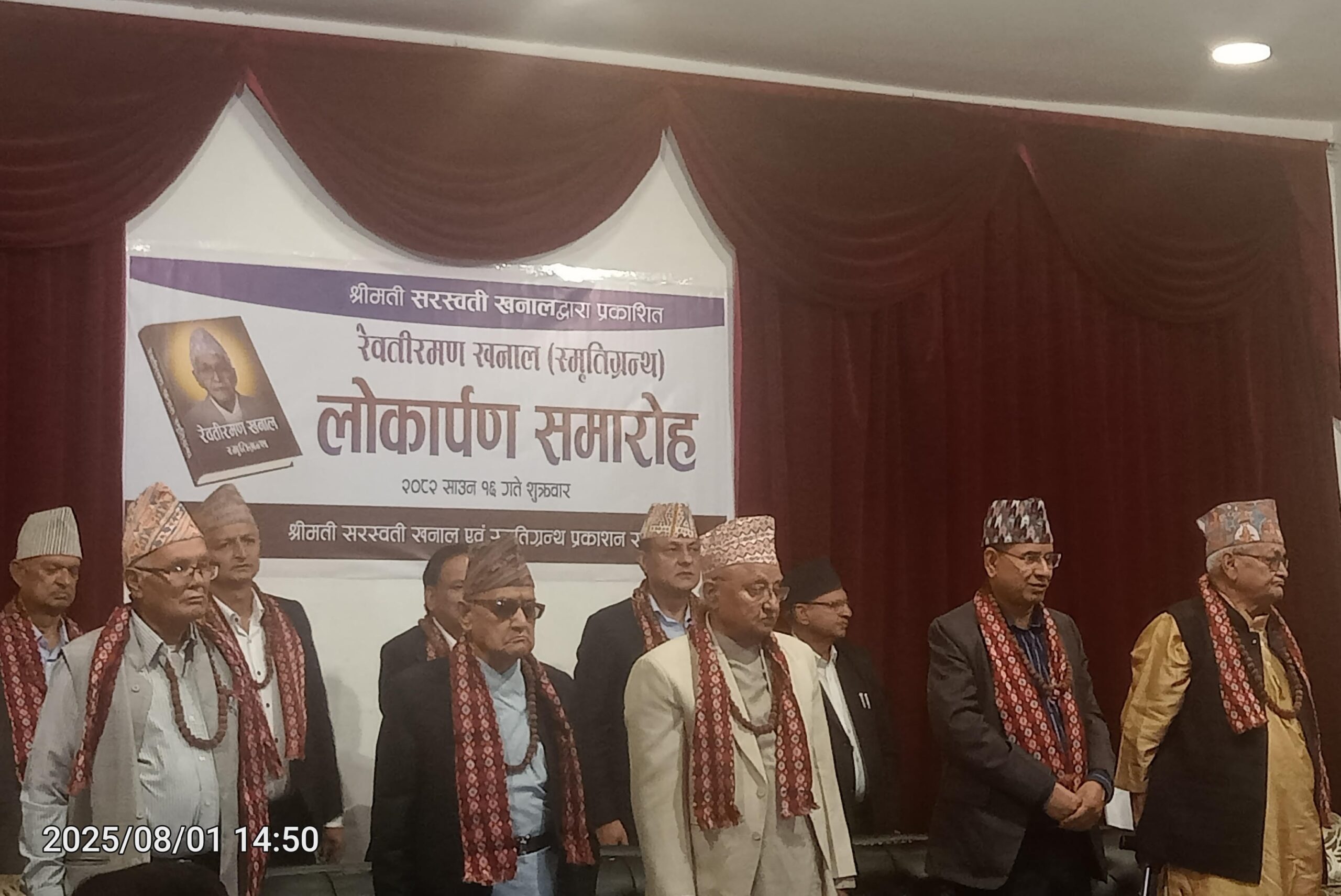 काठमाडौँ। तत्कालीन राजप्रसाद सेवाका प्रमुखसचिव रेवतीरमण खनालको सम्झनामा ग्रन्थ प्रकाशन गरिएको छ।