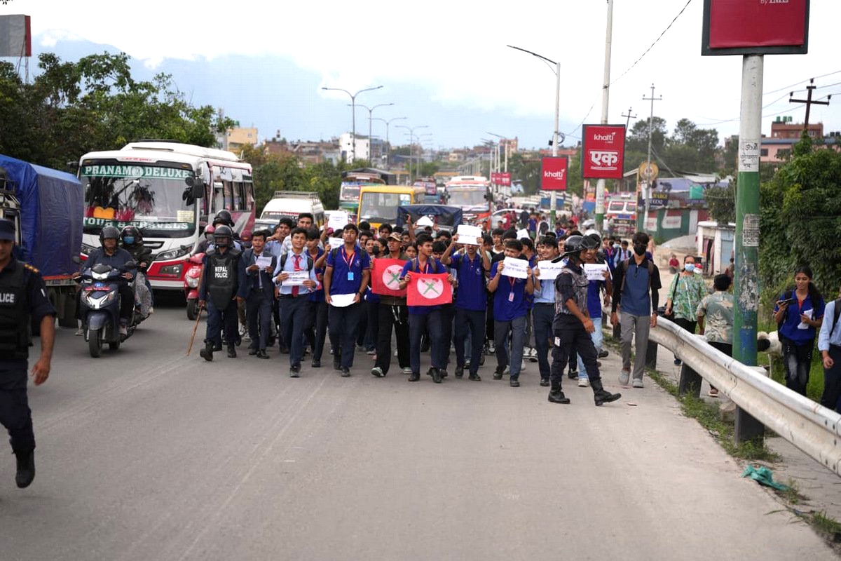 भारत र चीनले सार्वभौम राष्ट्र नेपाललाई हेपेको विरोधमा कोटेस्वर क्याम्पसका विद्यार्थीहरूले शुक्रबार विरोध प्रदर्शन गरेका हुन् ।