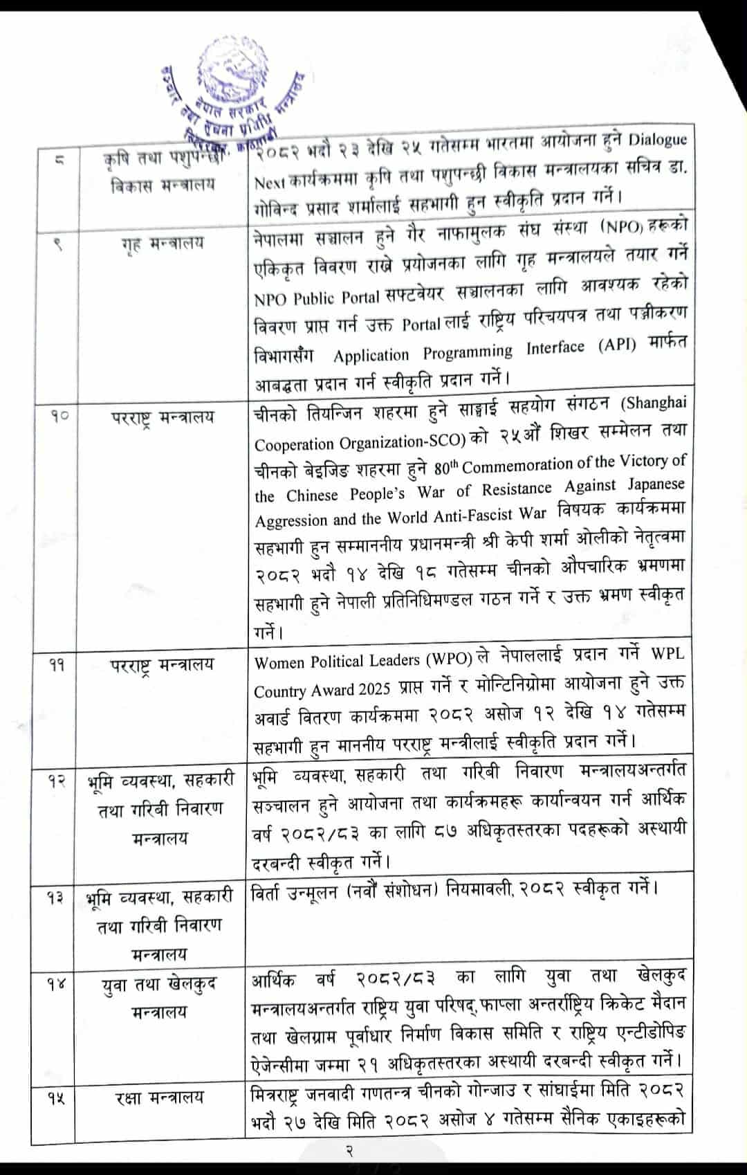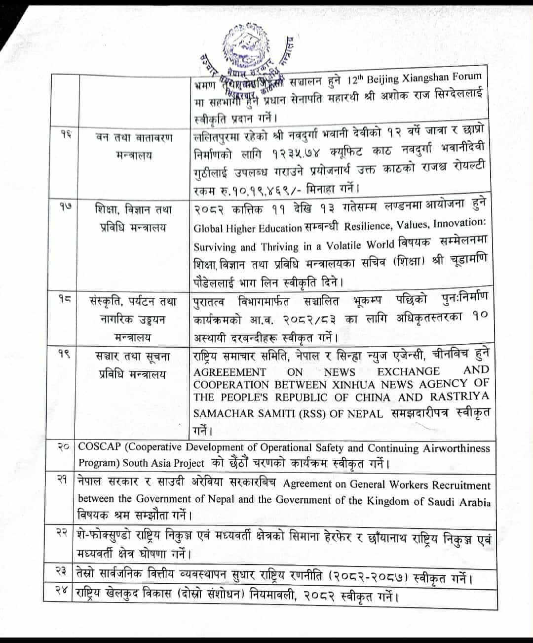 मन्त्रिपरिषद् बैठकका २४ निर्णय सार्वजनिक