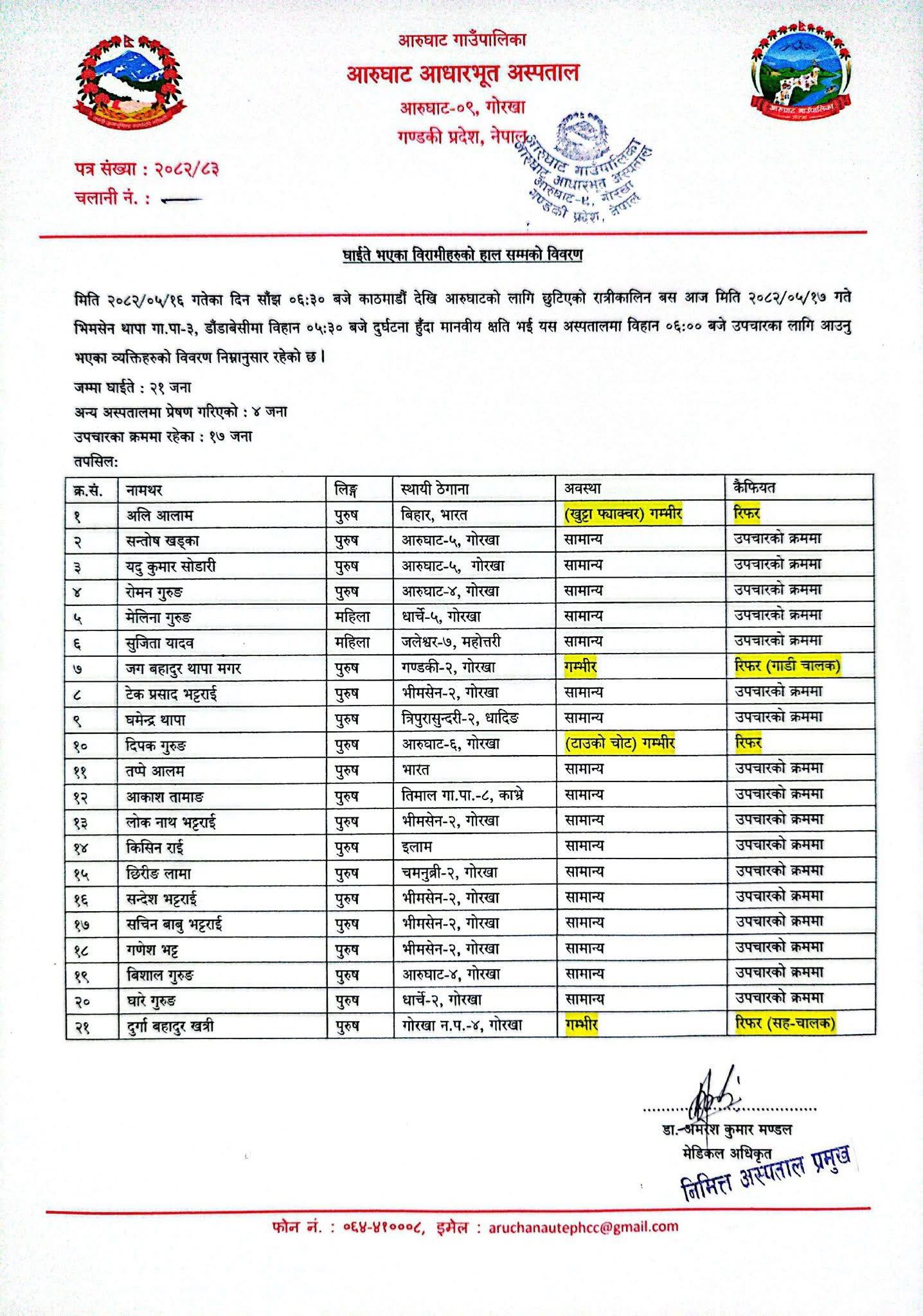गोरखामा बिहान भएको बस दुर्घटनामा २१ जना घाइते