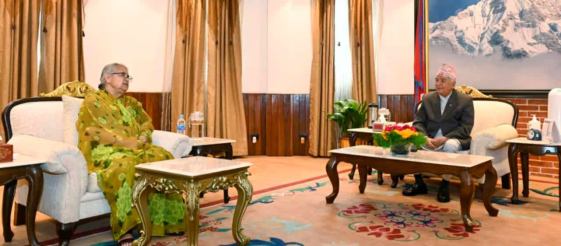 काठमाडौं, ८ असोज । प्रधानमन्त्री सुशीला कार्कीले राष्ट्रपति रामचन्द्र पौडेललाई भेटेकी छन्। प्रधानमन्त्री कार्कीले शीतल निवासमा पुगेर राष्ट्रपति पौडेलसँग भेट गरेकी हुन्।