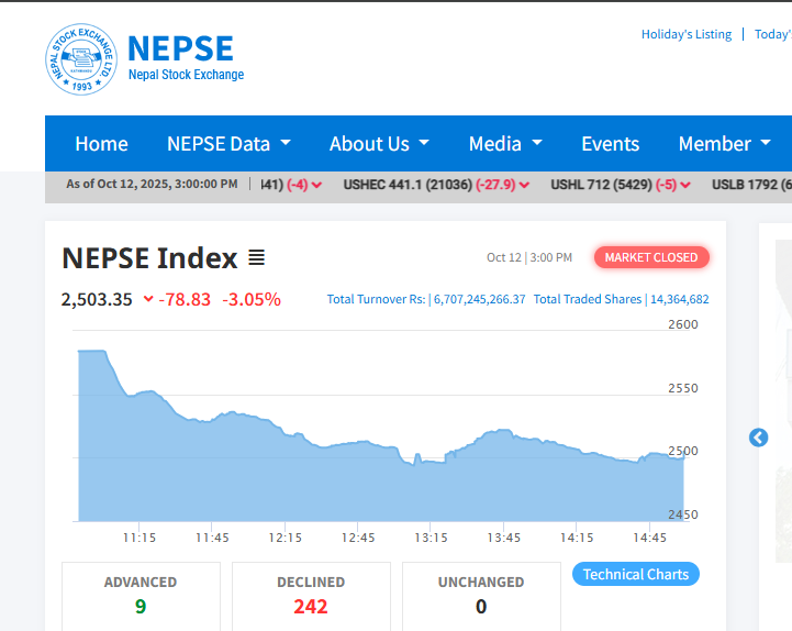 नेप्सेमा भारी गिरावट, नेप्से ७८.८३ अंकले घट्यो