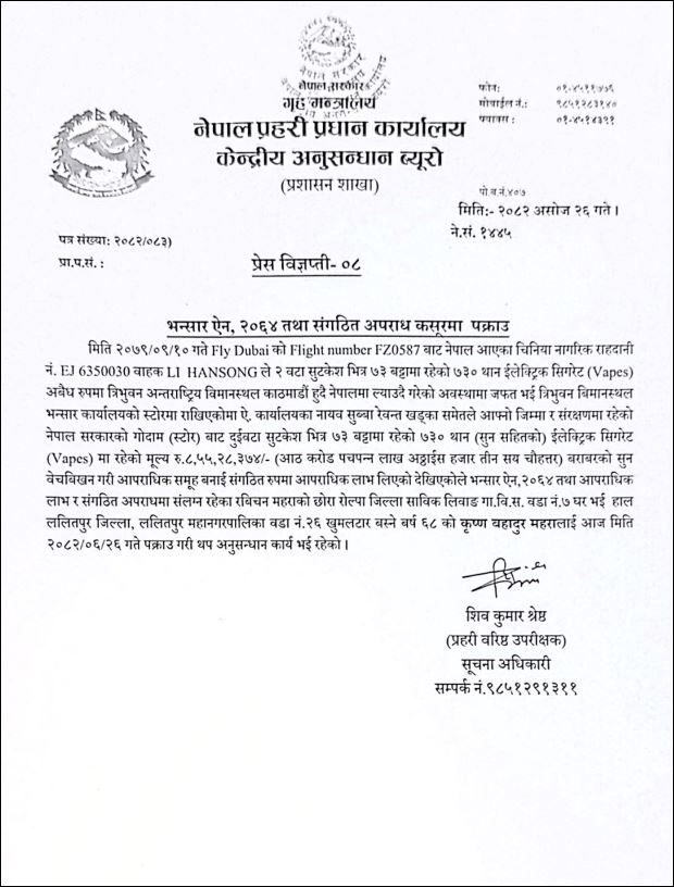 यसअघि महरालाई २०८० चैतमा पनि प्रहरीले नियन्त्रणमा लिएर अनुसन्धान गरेको थियो।