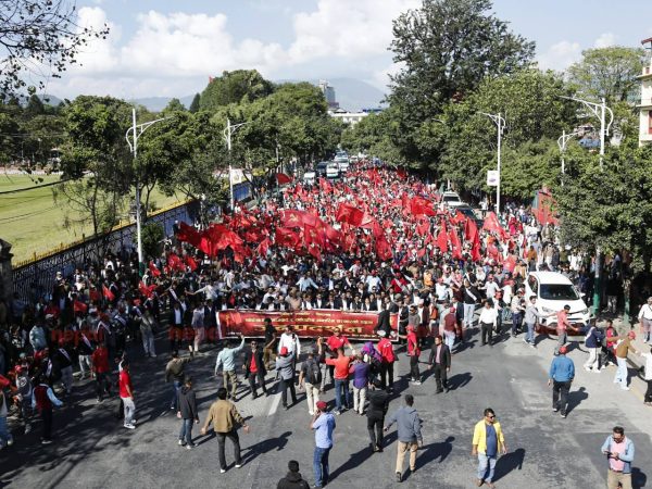 सर्वपक्षीय अन्तरिम सरकारको माग गर्दै काठमाडौंमा विप्लव नेकपाको जनप्रदर्शन