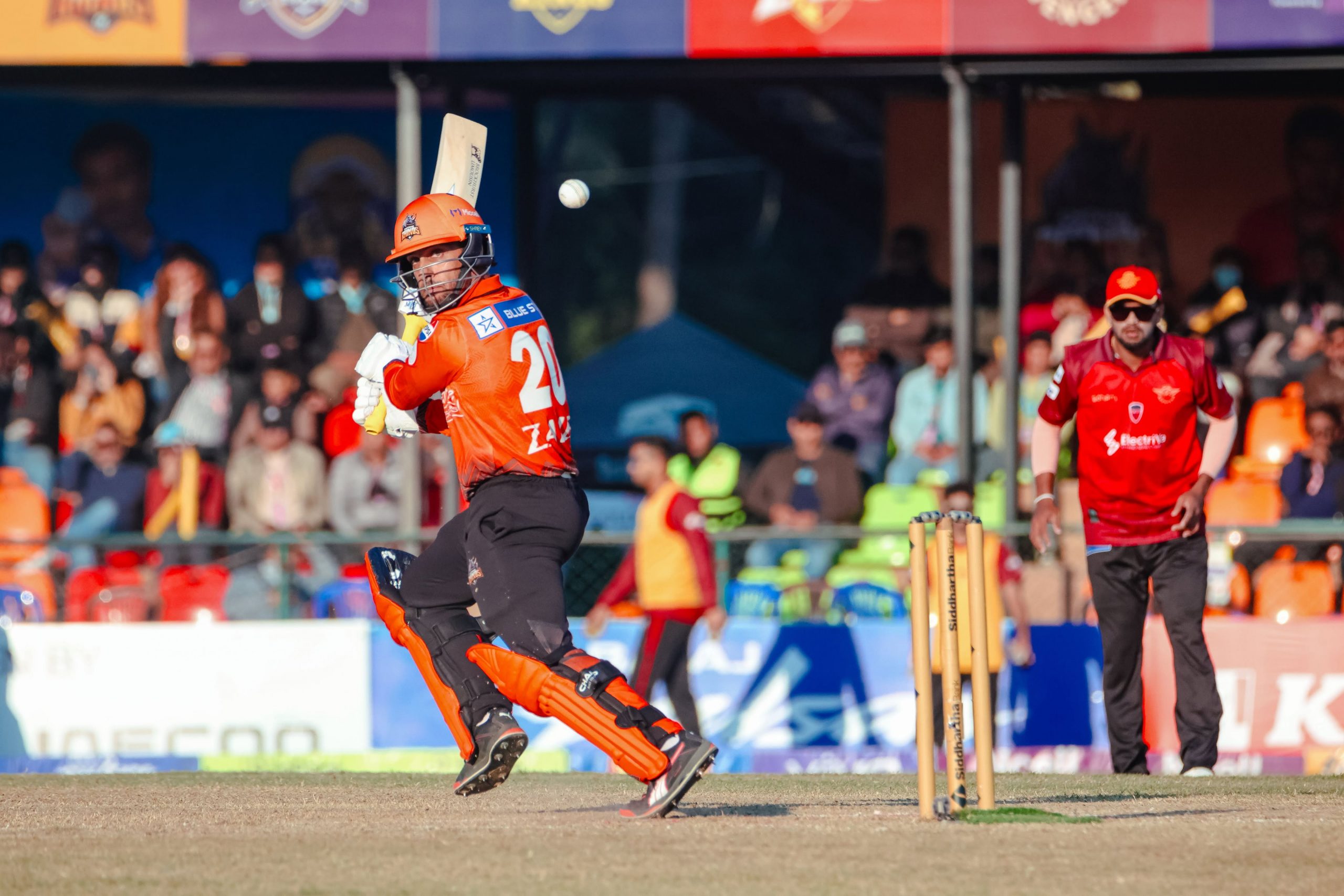 अल्पेश रामजानी ३३, डेविड मलान ५, अर्जुन साउद १, रवि बोपारा १, सैफ जैइव १७, कप्तान कुशल मल्ल २३ रनमा आउट भए । कमलसिंह ऐरी २ रनमा अविजित रहे । बलिङमा पोखराका धनन्जय लक्षनले सर्वाधिक ३ विकेट लिए । विपिन खत्री, रोहित चन्द र किरण ठगुन्नाले एकएक विकेट लिए । आजको खेल निकै रोमाञ्चक रहेको छ ।