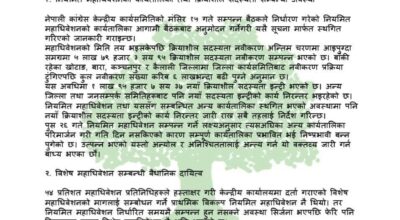 ु५४ प्रतिशत महाधिवेशन प्रतिनिधिहरूले हस्ताक्षर गरी केन्द्रीय कार्यालयमा दर्ता गराएको विशेष महाधिवेशनको मागलाई सम्बोधन गर्ने प्राथमिक विकल्प नियमित महाधिवेशन नै थियो। तर नियमित महाधिवेशन निर्धारित समयमै सम्पन्न हुन नसक्ने अवस्था सिर्जना भएपछि फेरि पनि विकल्पका रूपमा विशेष महाधिवेशन नै अघि आएको छ, विज्ञप्तिमा उल्लेख छ ।