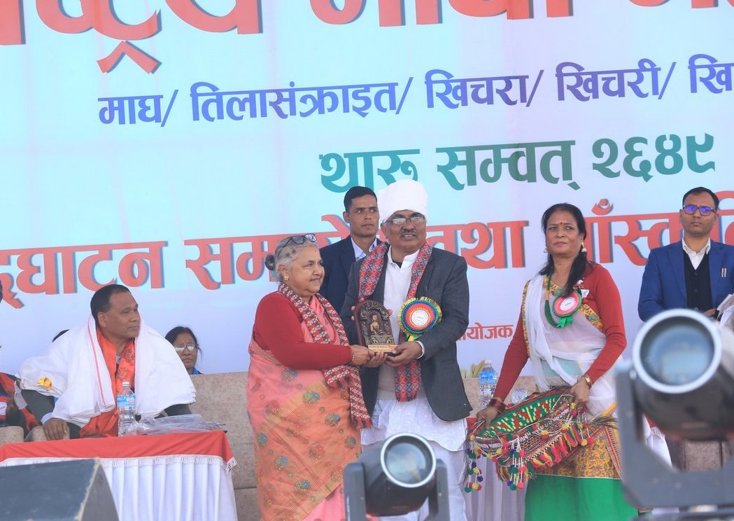 बिहीबार काठमाडौंमा आयोजित थारू राष्ट्रिय माघी महोत्सवको सम्बोधन गर्दै उनले नेपालमा पश्चिमको कञ्चनपुरदेखि पूर्वको झापासम्म र तराई मधेसका विभिन्न जिल्लामा बसोबास रहेको थारू समुदाय देशविदेशमा समेत फैलिँदै गएको बताइन्।