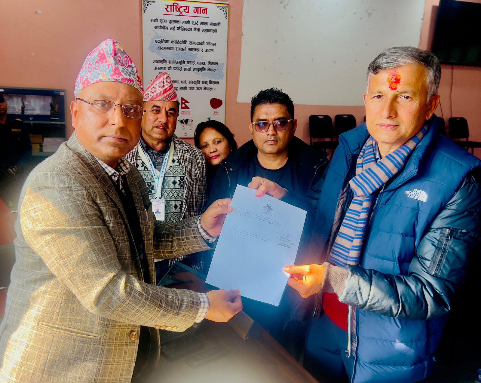 आगामी फागुन २१ गते सम्पन्न हुने प्रतिनिधिसभा सदस्य निर्वाचनका लागि आज नेपाली कांग्रेसबाट धमलाले निर्वाचन कार्यालय, धादिङ पुगी उम्मेदवारको मनोनयन दर्ता गराएका हुन् ।