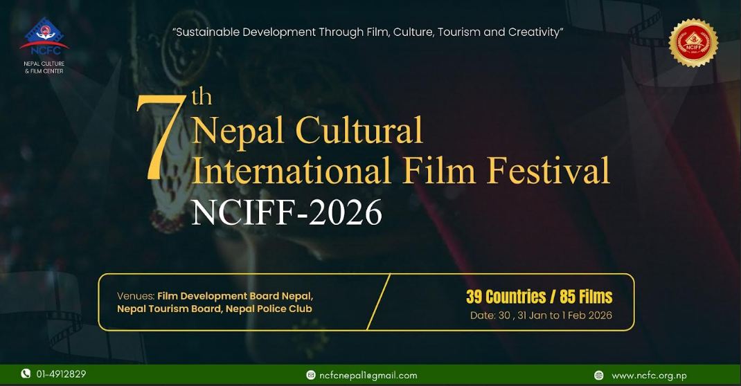 काठमाडौँ । नेपाल संस्कृति तथा चलचित्र केन्द्रको आयोजनामा ‘ नेपाल कल्चरल इन्टरनेशनल फिल्म फेस्टिभल ९ल्ऋक्ष्ँँ० को सातौँ संस्करण आयोजना हुने भएको छ । माघ १६ गतेदेखि १८ गतेसम्म चाबहिलको चलचित्र विकास बोर्ड, भृकुटीमण्डपस्थित नेपाल पर्यटन बोर्ड र नेपाल पुलिस क्लबमा आयोजना हुने महोत्सवमा ३९ देशका ८५ चलचित्रहरु प्रदर्शन हुने भएका छन् । काठमाडौँमा विश्वभरका सांस्कृतिक, सामाजिक र सिर्जनात्मक चलचित्रको प्रवद्र्धन गर्ने उद्देश्यले विगत सात वर्षदेखि निरन्तर आयोजना हुँदै आएको यो महोत्सव नेपालकै एक प्रतिष्ठित अन्तर्राष्ट्रिय चलचित्र उत्सवका रूपमा स्थापित हुँदै गएको आयोजकको भनाई छ । यस वर्षको महोत्सवमा ७५ भन्दा बढी देशबाट ७०० चलचित्र प्राप्त भएका मध्येबाट ५२ देशका १३८ चलचित्रहरू महोत्सवका लागि चयन भएका थिए ।