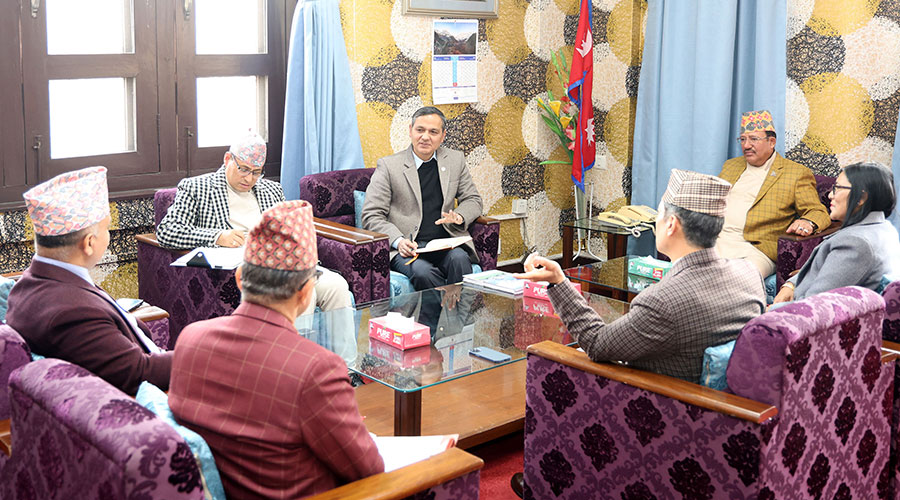 कार्यवाहक प्रमुख निर्वाचन आयुक्त रामप्रसाद भण्डारीलगायत आयोगका पदाधिकारीसँग बिहीबार निर्वाचन आयोगमा निर्वाचनको शान्तिसुरक्षा र निर्वाचनको समग्र व्यवस्थापकीय तयारीका बारेमा छलफल भएको थियो ।