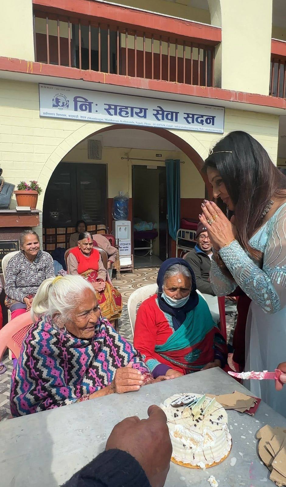 बृद्धबृद्धालाई खाद्यान्न र न्यानो कपडा वितरण गर्दै सविताले यसरी मनाइन् जन्मदिन