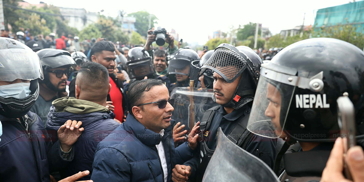 प्रहरी बाक्लो संख्यामा परिचालन गरिएको छ । प्रधानमन्त्री बालेन्द्र शाह र गृहमन्त्री सुधन गुरुङको विरुद्धमा नारााबाजी गर्दै प्रहरीको घेरा तोड्दै आक्रोशित रूपमा प्रदर्शनकारी अघि बढेका छन् ।